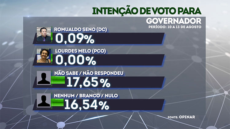 O candidato Dr. Pessoa (Solidariedade) surge em segundo lugar com 11,65% das intenções de voto. Luciano Nunes, do PSDB, se manteve estável e tem 7,58%.