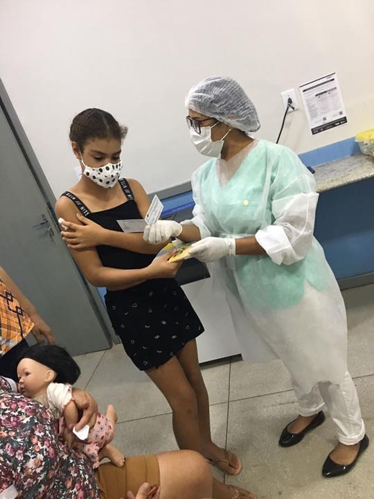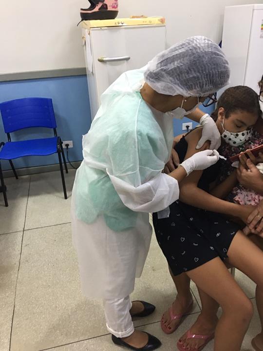 A vacinação aconteceu no posto da Secretaria Municipal de Saúde e foi acompanhada pela secretária de saúde Dulce Martins. Yasmim Lohaila sofre de Neuropatologia crônica e estava acompanhada por familiares.